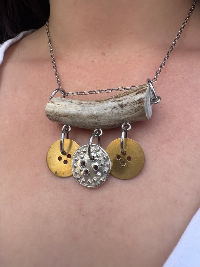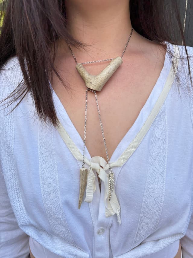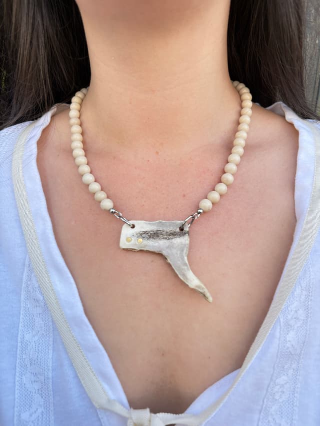 Dice Jewels is a handmade jewelry brand created by Tyler McGuirk, based in the Midwest. Inspired by the natural beauty of the region, Dice Jewels crafts one-of-a-kind pieces using a variety of materials, including fine silver, deer antlers, wood, stones, and repurposed vintage jewelry. Each piece is unique—designed and made entirely by hand to exist as a singular work of wearable art.