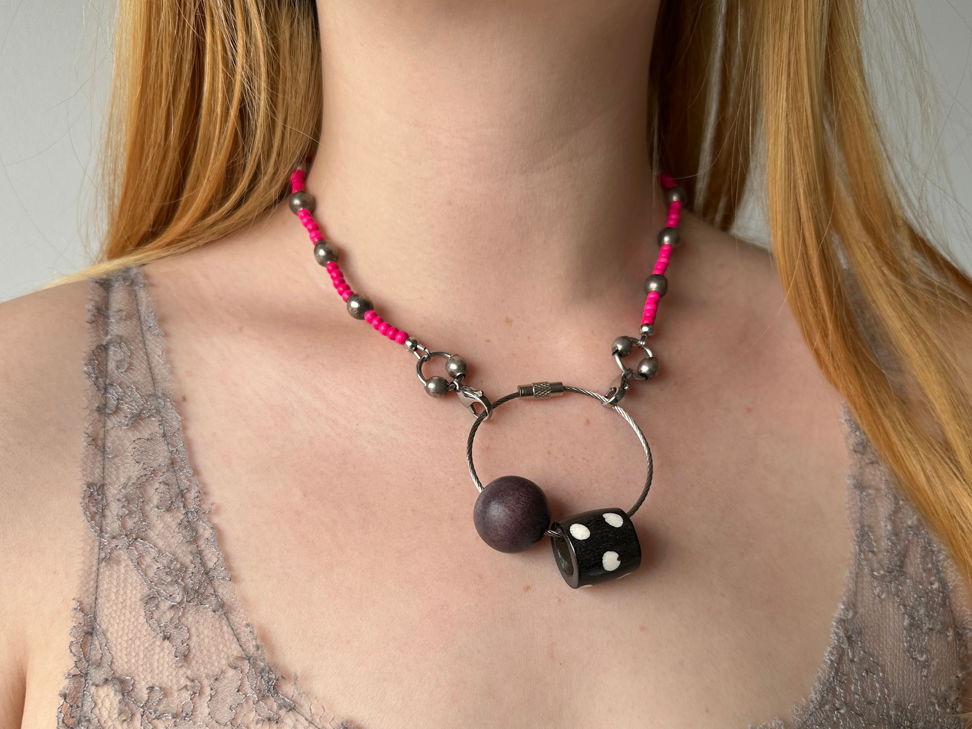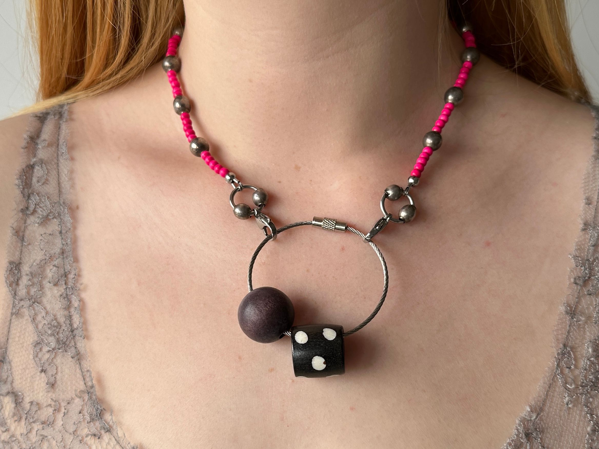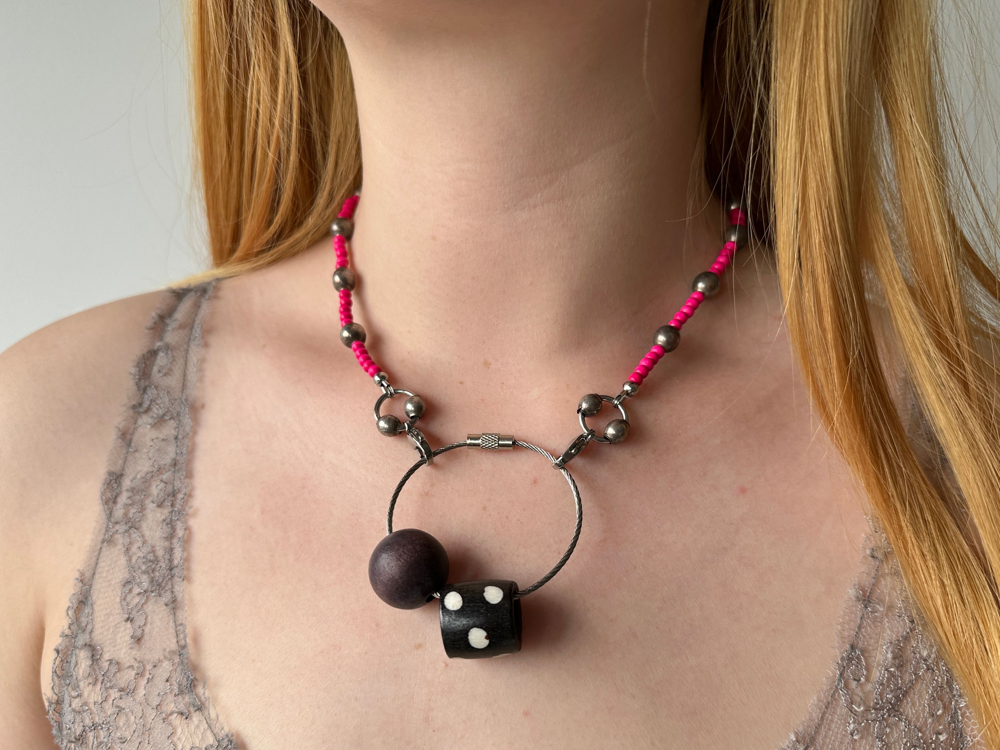 sterling silver beads - pink beads - polka dot inlayed bone bead - wood ball bead - stainless steel hardware
