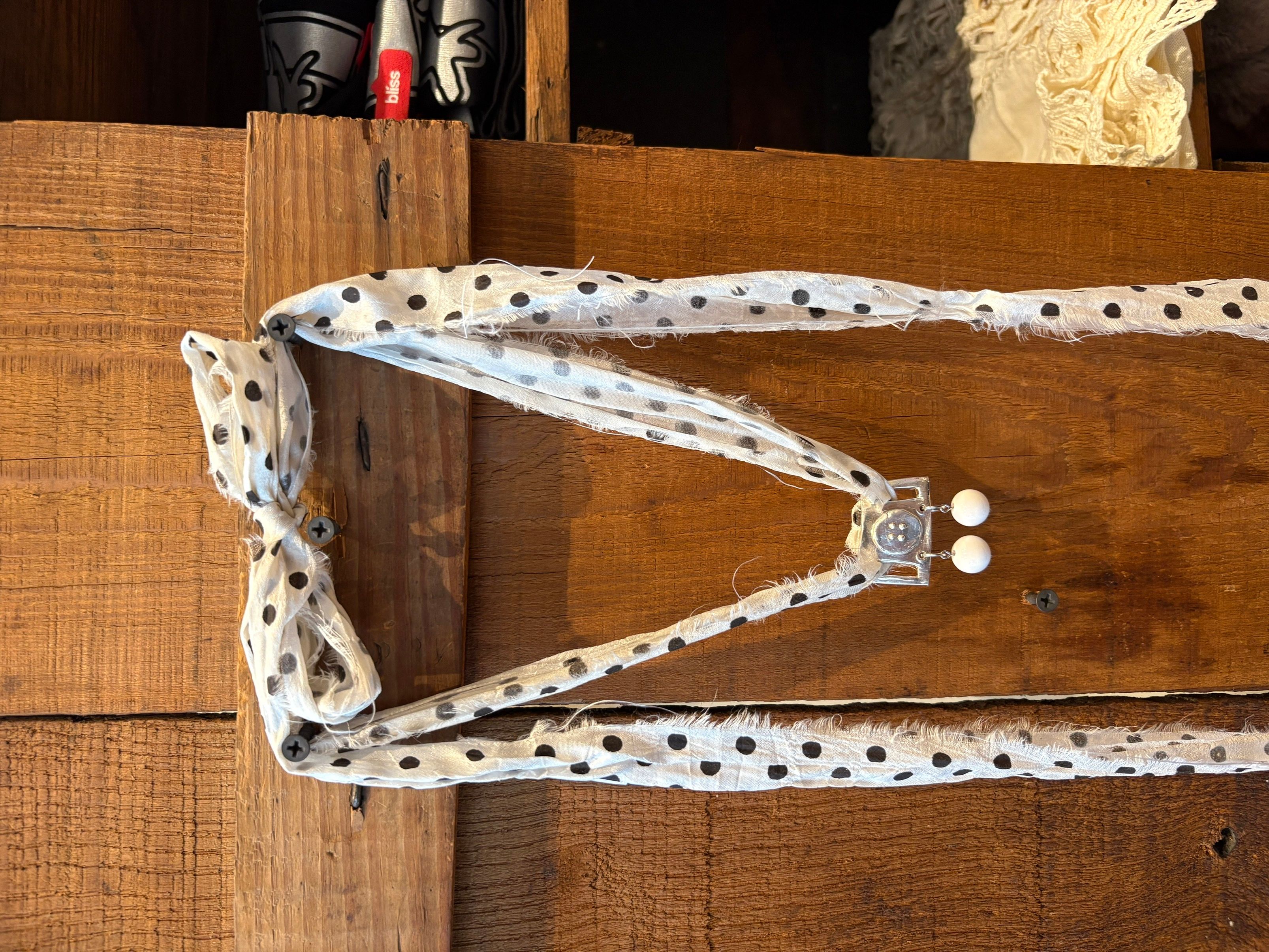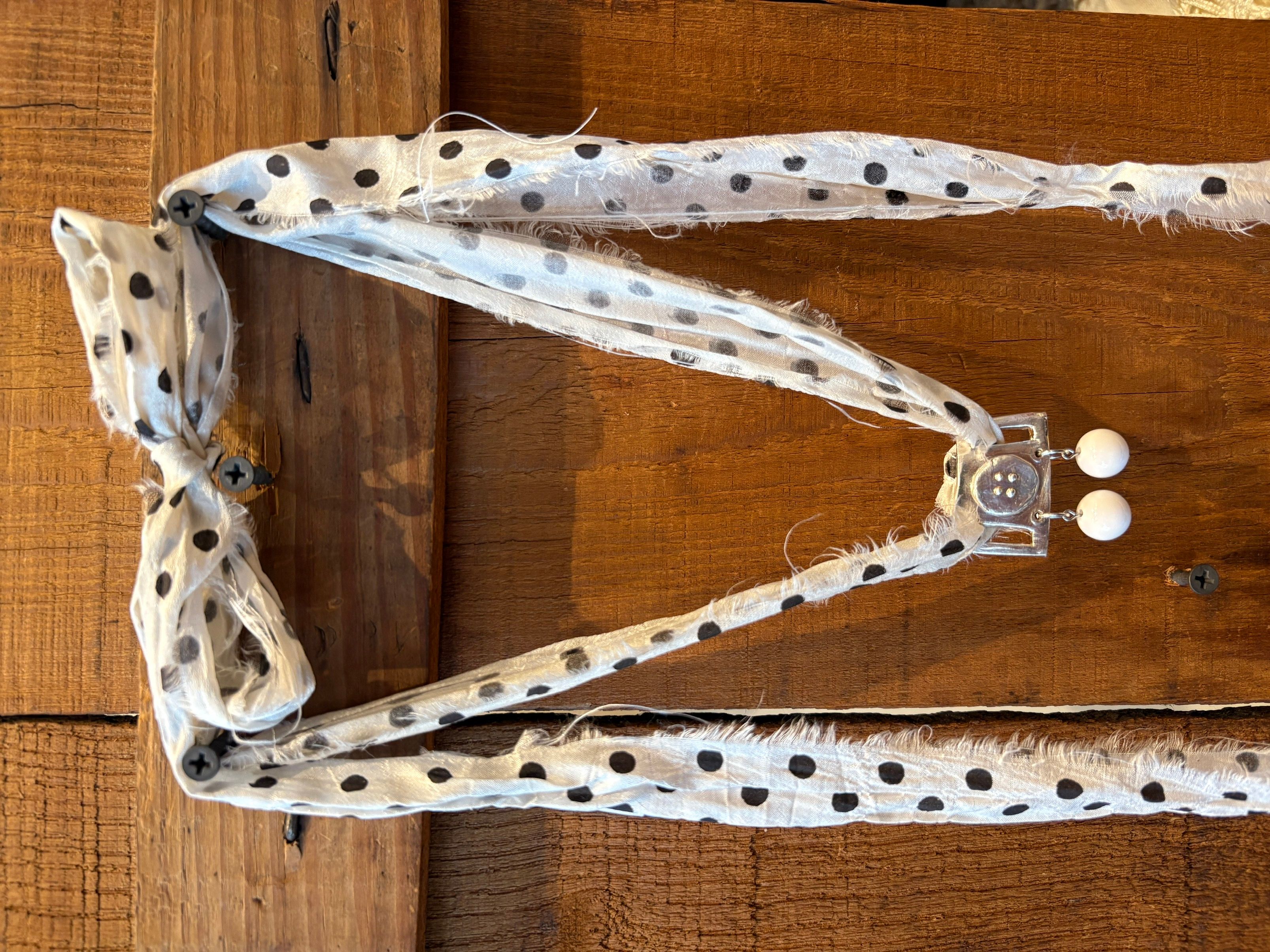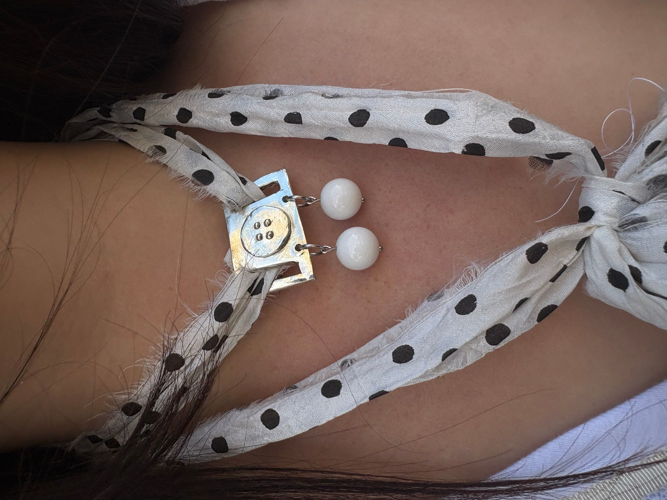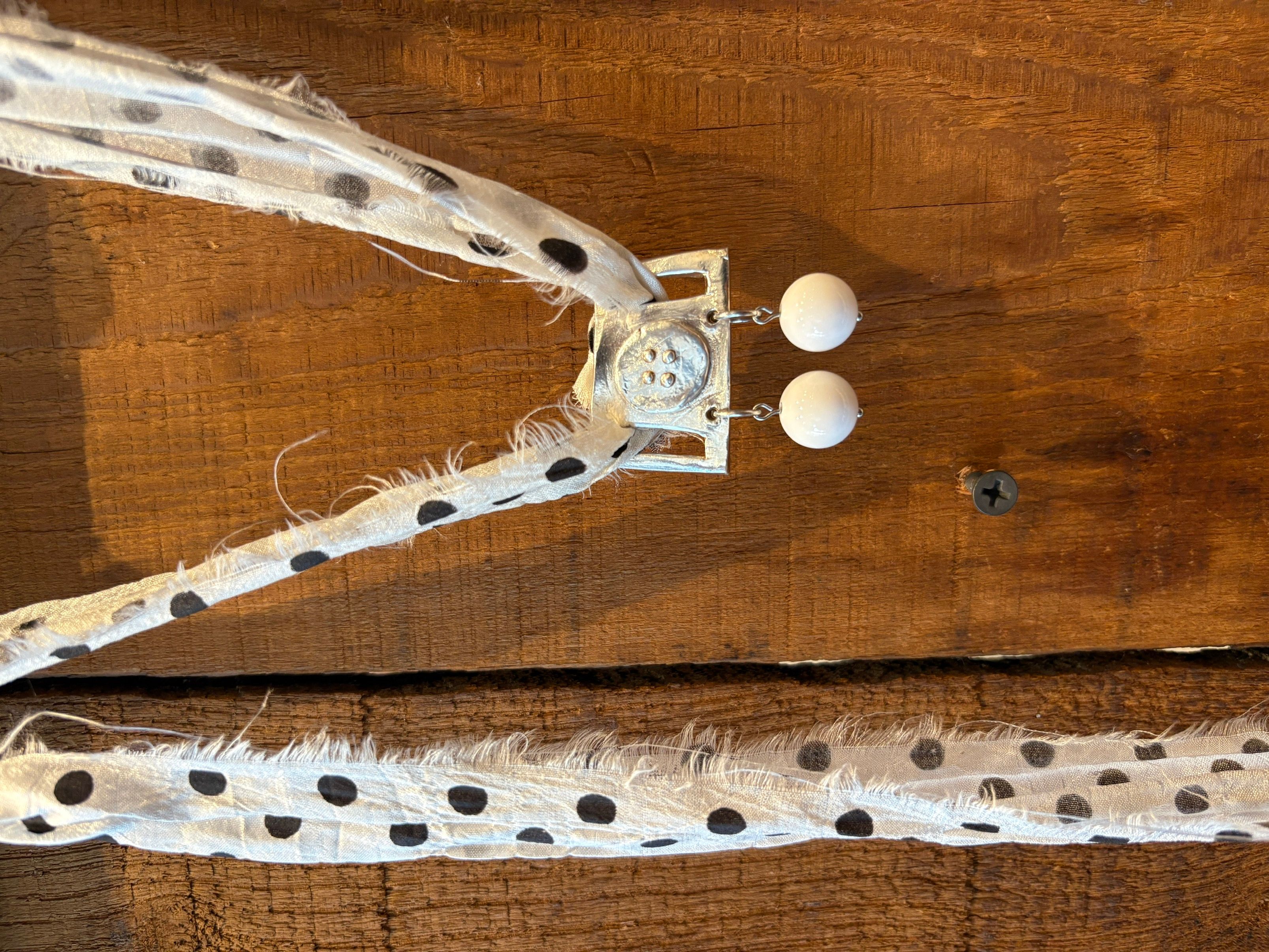 silk ribbon with 2" pendant made of fine silver and stone beads