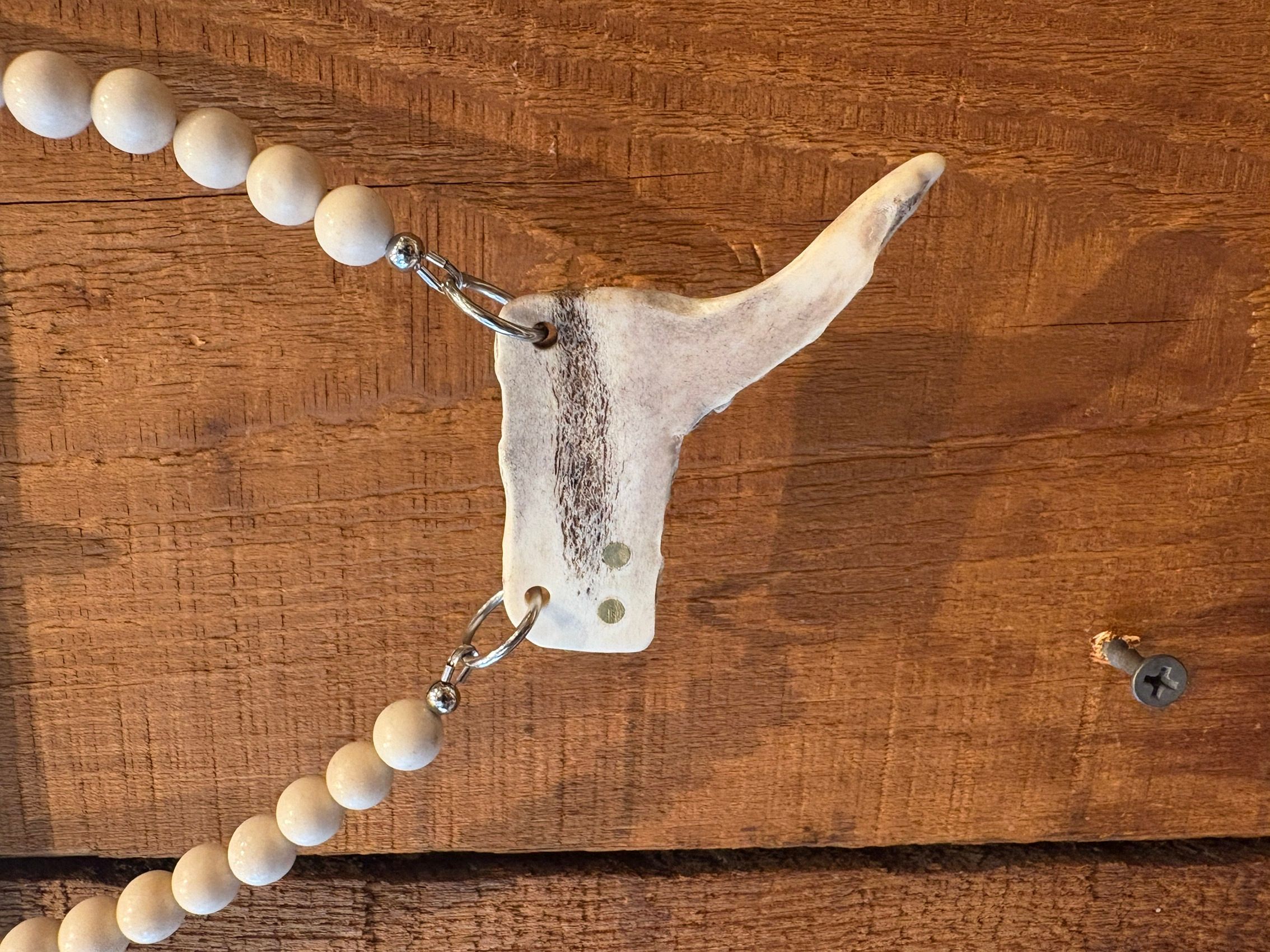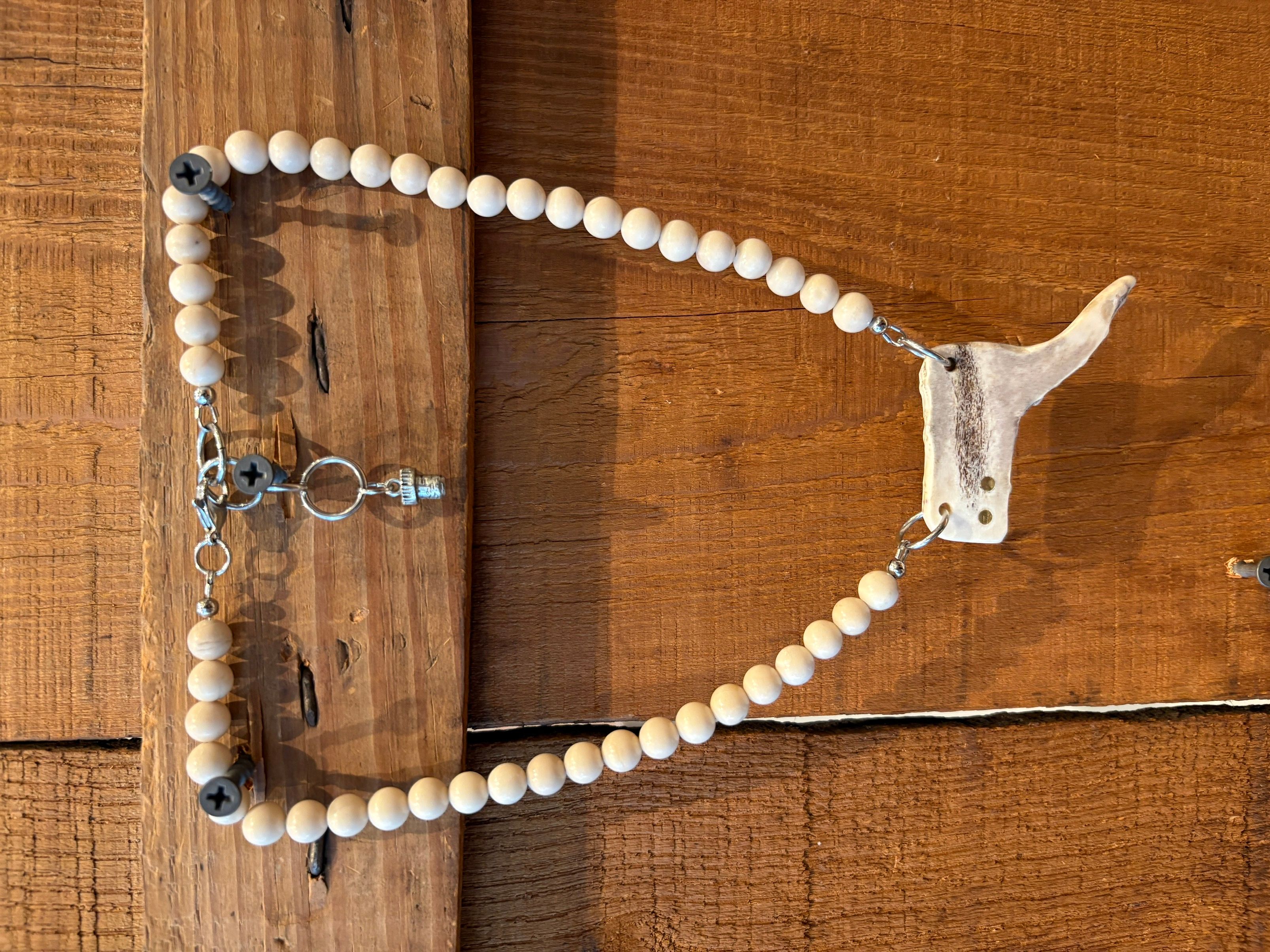 riverstone beads with stainless steel hardware, and genuine deer antler with inlaid brass