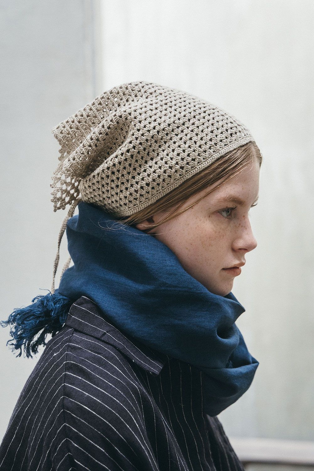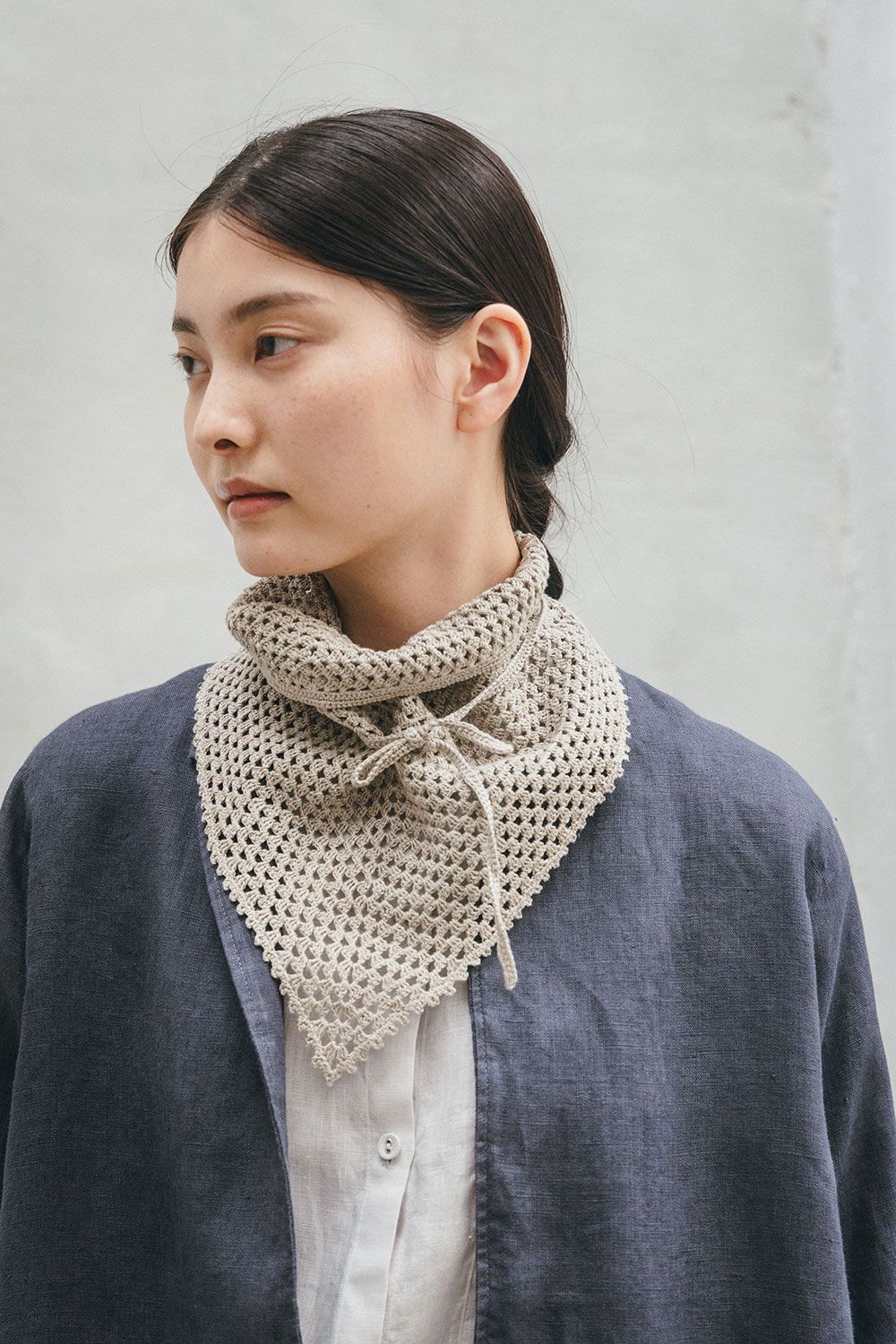 delicate, hand knit scarf that can be worn as a head scarf or neck scarf